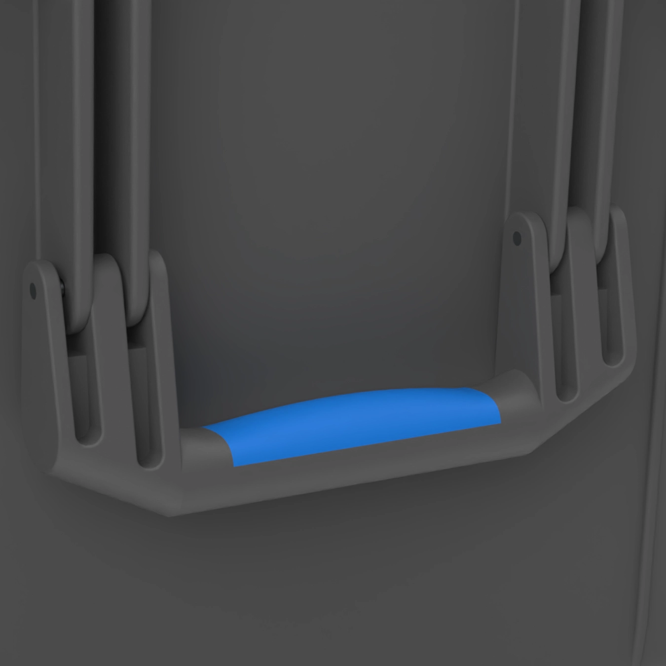 Teleskopischer Trolley-Griff für einfache Bewegung. 2 Räder für mühelosen transport auf längeren Strecken. Drei gummierte, anklappbare Tragegriffe ermöglichen das sichere Heben und Tragen des Tabletkoffers.